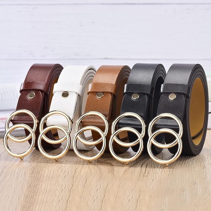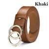 Женские кожаные ремни с двойной круглой пряжкой, модный ретро-регулируемый ремень