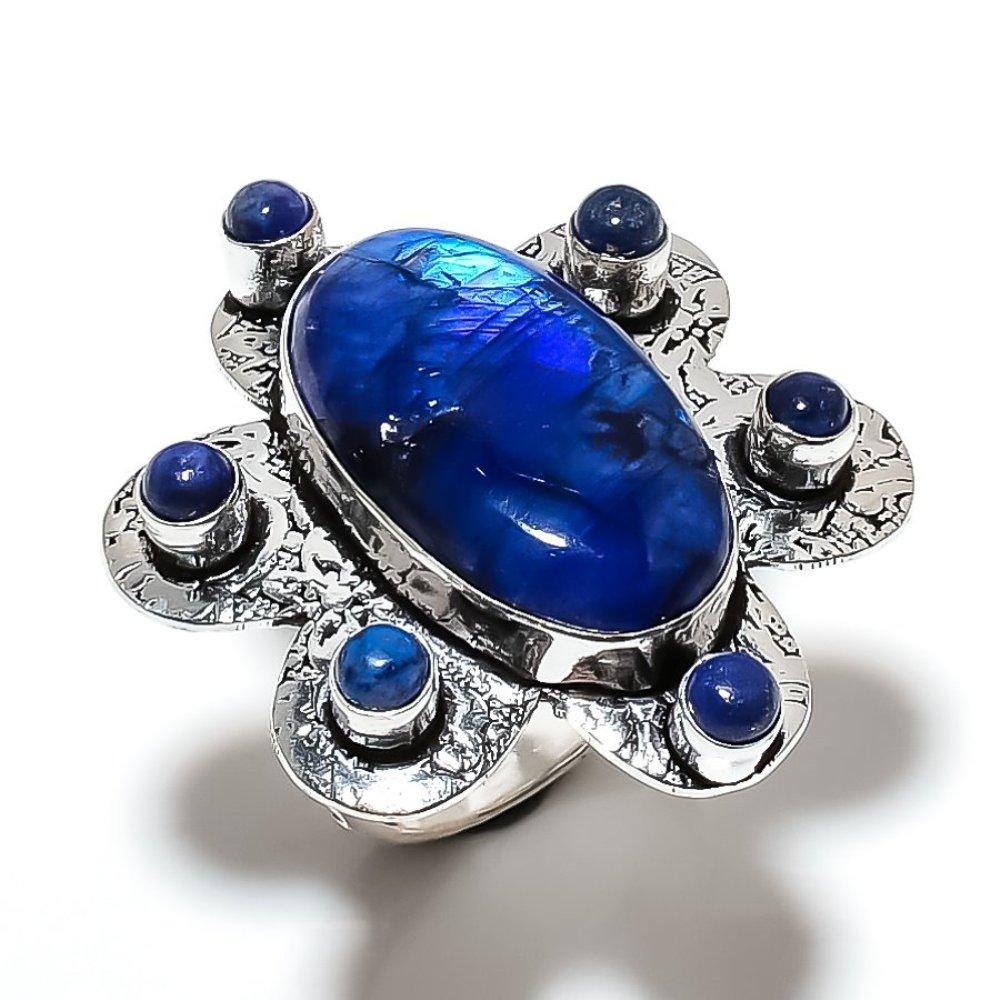 Кольцо из серебра 925 пробы с синим лунным камнем и лазуритом, размер 9, s2K50 — купить товар онлайн с бесплатной доставкой по всему миру!