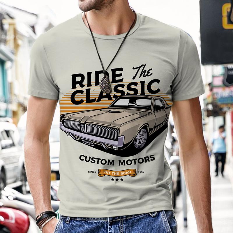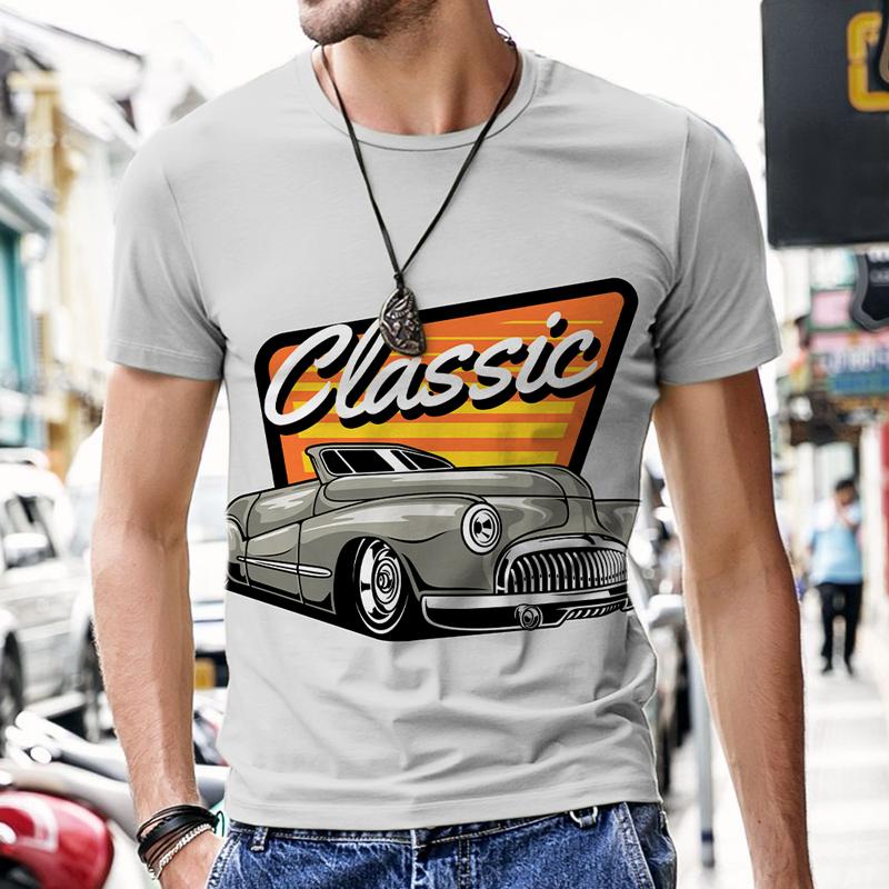 Футболка Oufi для мужчин, мужские футболки, винтажный дизайн автомобиля, хип-хоп-топы, спортивный костюм с коротким рукавом и 3D-принтом, новые пляжные футболки 2022 года
