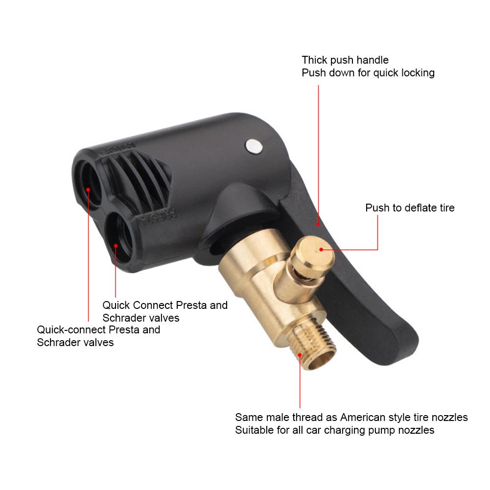 4. Превосходные уплотнительные характеристики: Насадка для велосипедного насоса 2 в 1 разработана для обеспечения превосходной герметизации, предотвращая утечку воздуха, для быстрого и надежного соединения с вентилями шин.. Это гарантирует, что накачивание шин будет не только более быстрым, но и более эффективным, что сэкономит вам время и усилия..