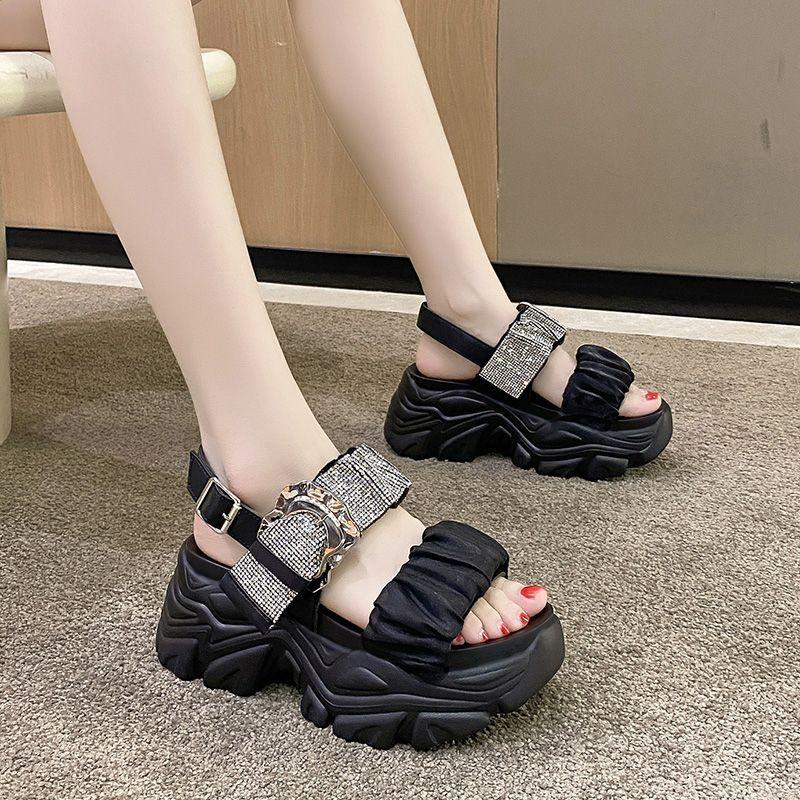 Маленькие спортивные сандалии со стразами, увеличивающие рост, женские летние новые туфли на платформе Muffin, универсальные повседневные женские туфли — купить товар онлайн с бесплатной доставкой по всему миру!