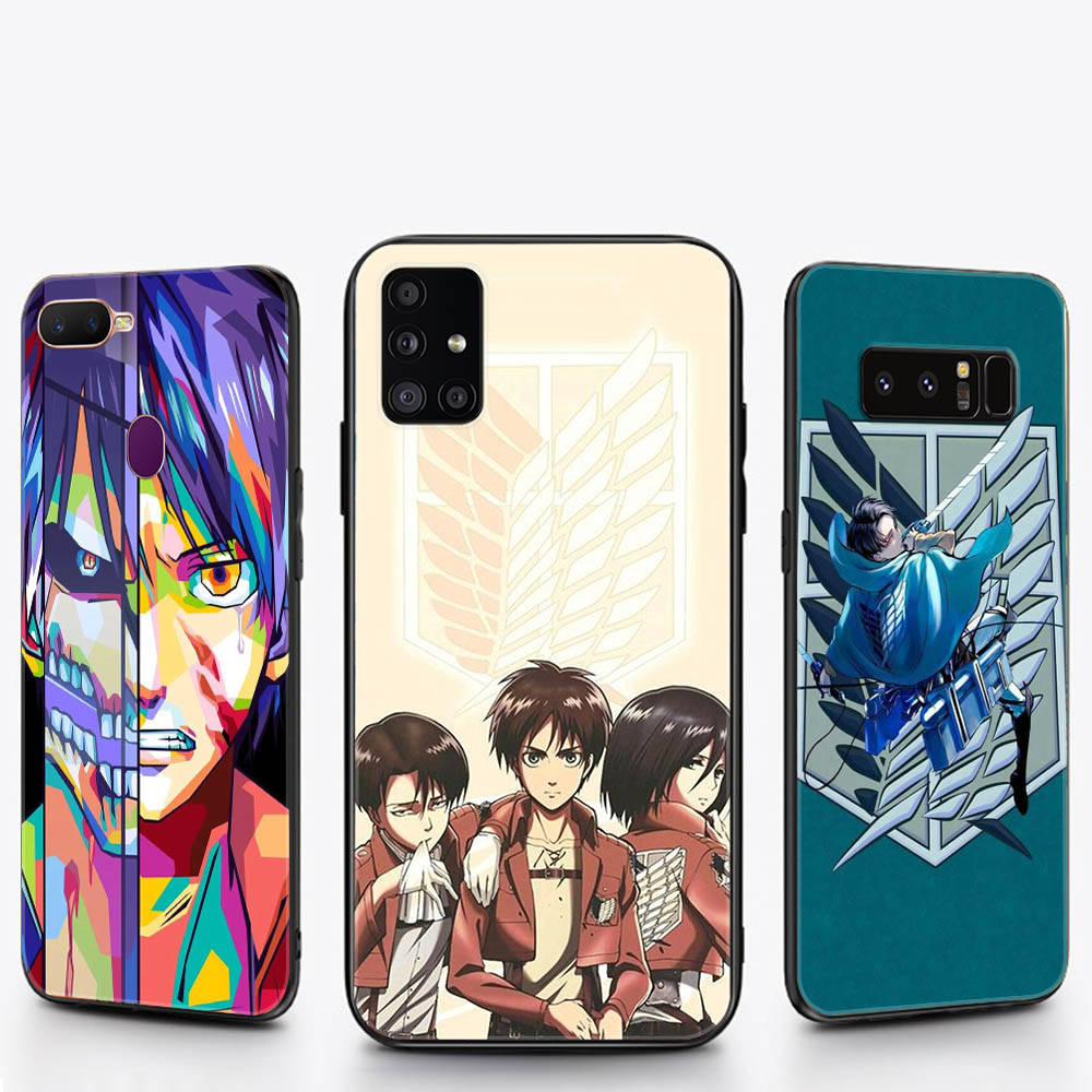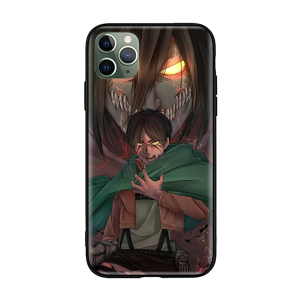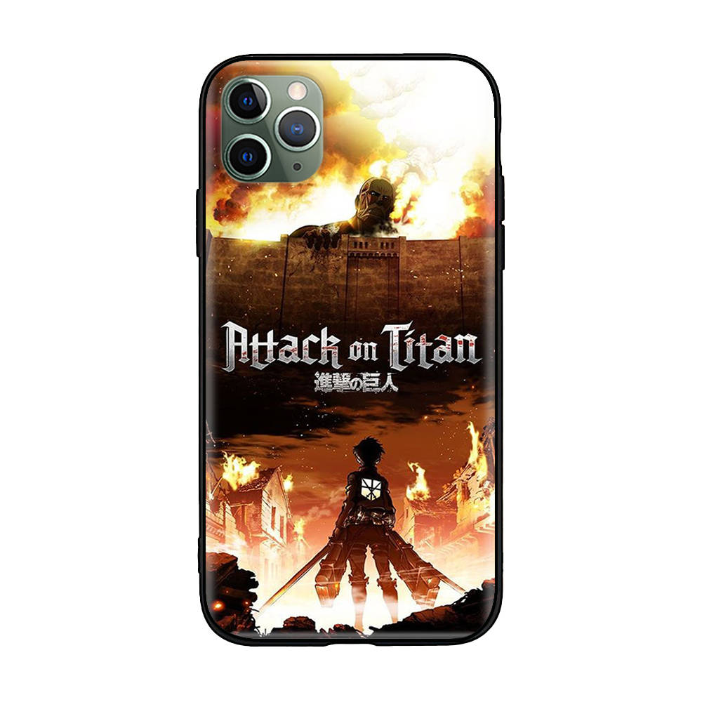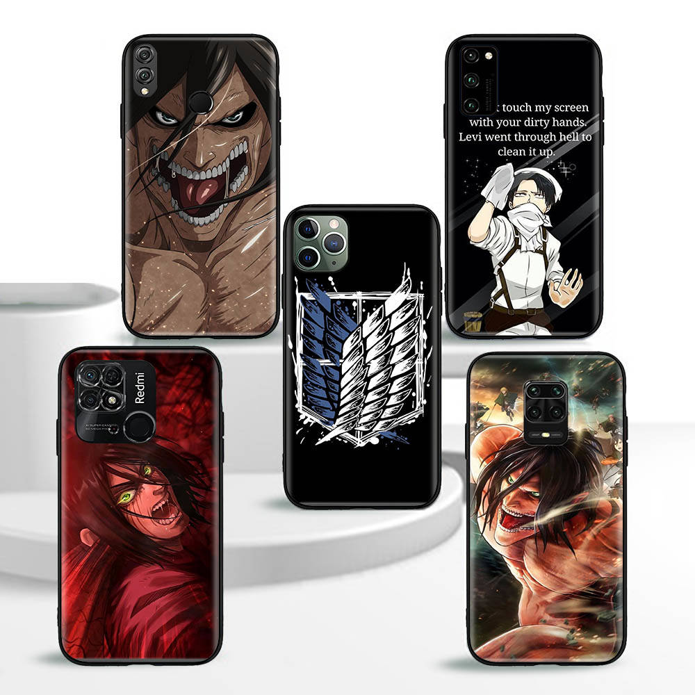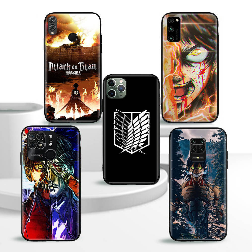 Мягкий черный чехол W-30 Anime Attack on Titan для iPhone 11 12 13 14 15 6 7 8 X XS Pro Max XR Samsung S21 S22 S23 S24 FE Ultra S8 Plus