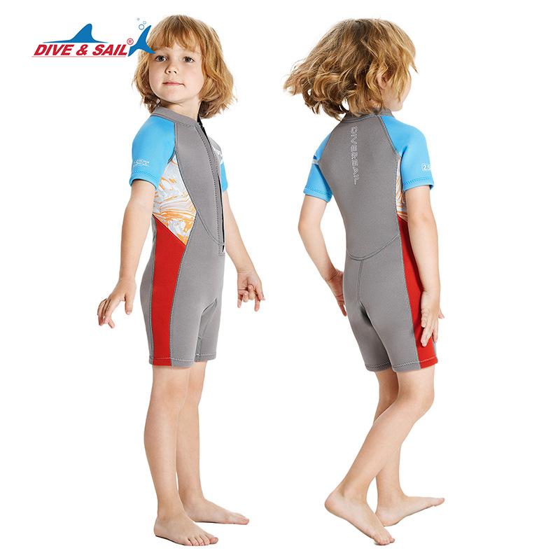 2.5MM детский гидрокостюм, термостойкий цельный гидрокостюм для детей среднего и старшего возраста, с короткими рукавами, для плавания, серфинга, снорклинга, утолщенный купальник