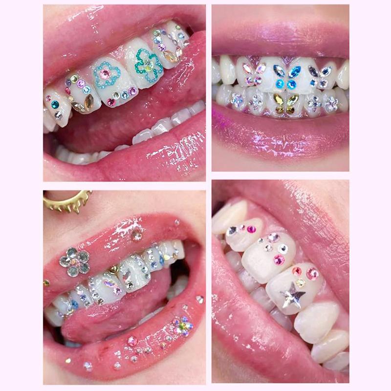 Зубная дрель Украшения для зубов Украшения с коробкой DIY Наклейки Драгоценные камни для зубов Красота Алмазные Зубные украшения Драгоценные камни для зубов Украшения