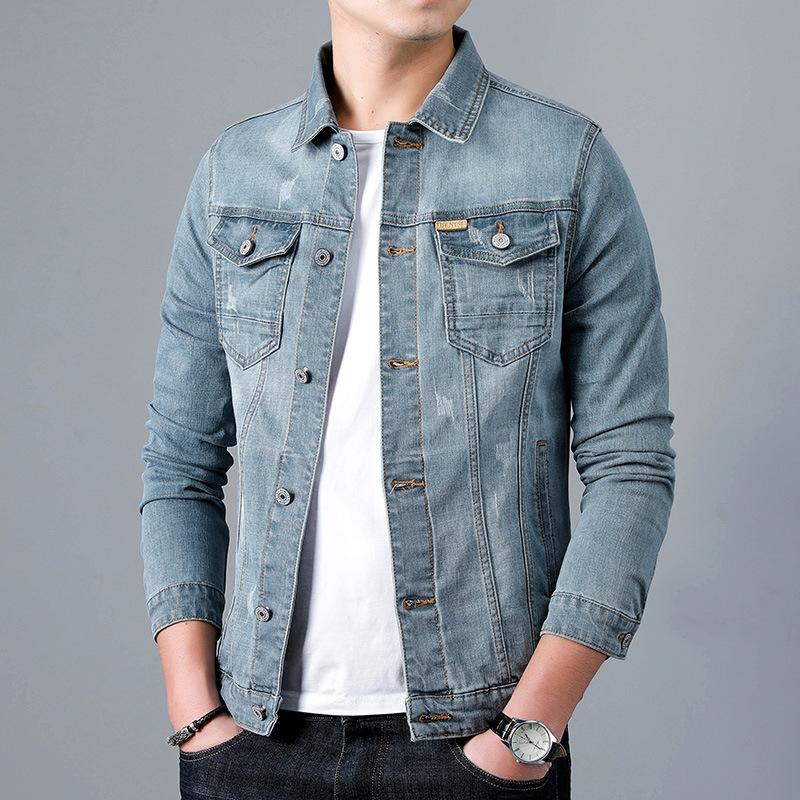 Весенняя мужская повседневная хлопковая джинсовая куртка классического стиля, модная тонкая стираная ретро-синяя джинсовая куртка, мужская брендовая одежда больших размеров