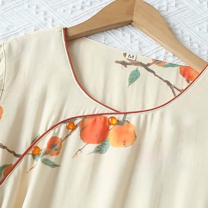 Весна / Лето Тонкая женская пижама в китайском национальном стиле Свободная одежда из бамбукового хлопка Рукава семь четвертей Домашняя одежда