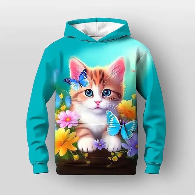 Толстовка с капюшоном с 3D-принтом и цветочным принтом для девочек, с длинным рукавом, с 3D-принтом, осень-зима, активная мода, милый полиэстер, дети