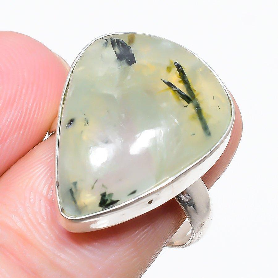 Кольцо из серебра 925 пробы с драгоценным камнем пренит, размер 8 U2s40