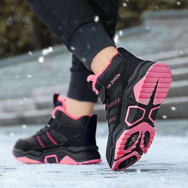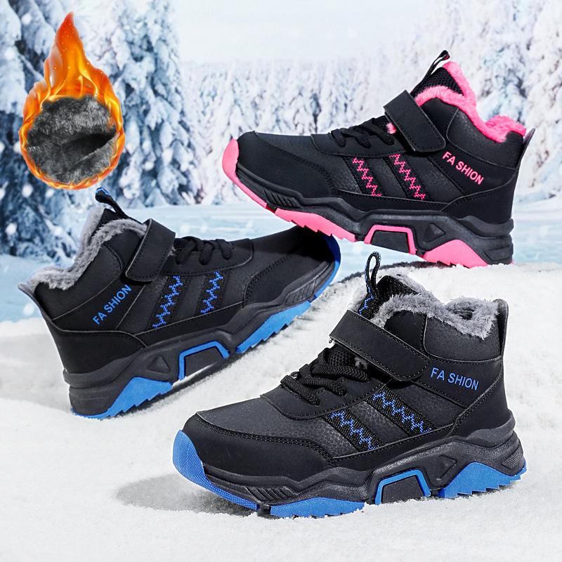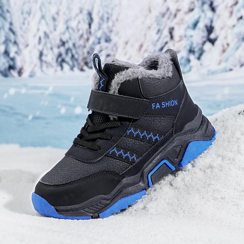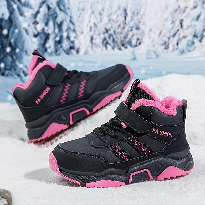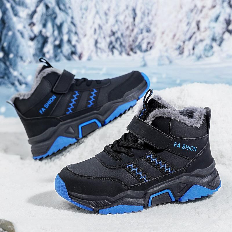 Зимние детские нескользящие износостойкие модные бархатные теплые уличные высокие хлопковые ботинки зимние ботинки спортивная и досуговая обувь