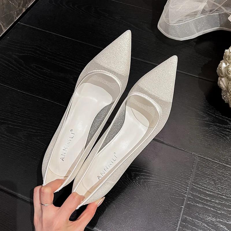 Модные сетчатые туфли с острым носком на высоком каблуке для женщин, сексуальные кружевные белые свадебные туфли, банкетное платье, туфли цвета шампанского для подружек невесты 2024 года, новые женские туфли-лодочки
