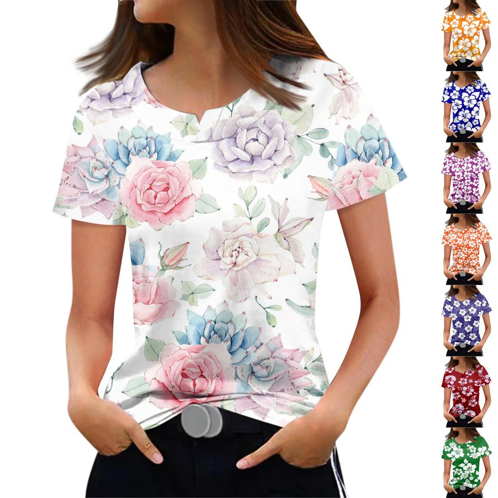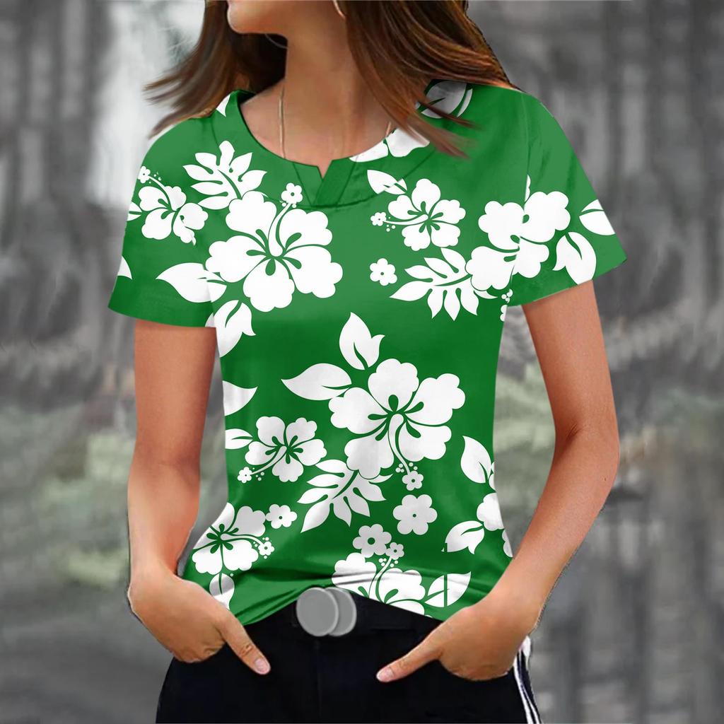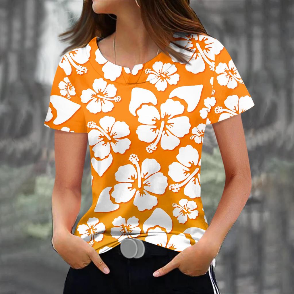 Модные футболки для женщин, летние женские топы, 3D-принт с цветочным принтом, V-образный вырез, короткие рукава, женская футболка большого размера