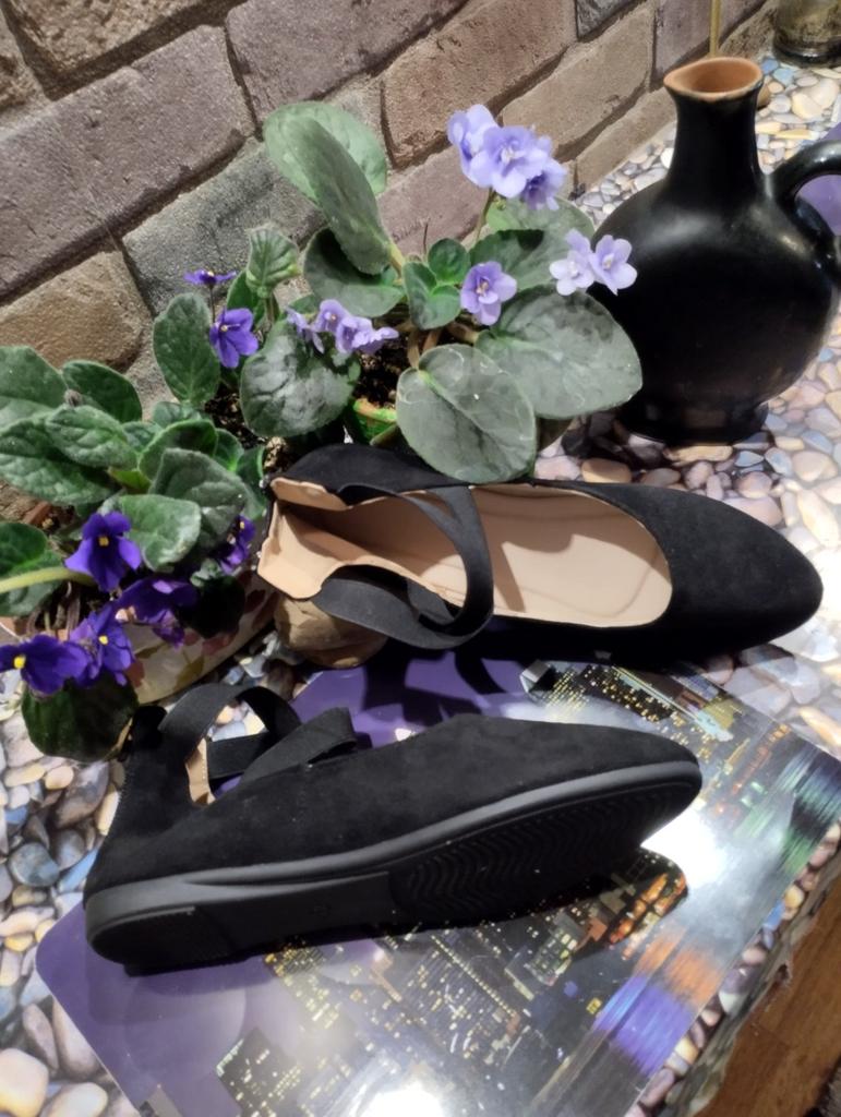 ♦️Балетки♦️ Увидела в обзоре у Светланы Анисимовой такие вот балеточки... и мне их точно надо😜 Удобные, комфортные и выполнены аккуратно..... есть небольшие огрехи, но они вполне исправимы и на функциональность не влияют🤗 ✅Изготовлены из искусственной замши. ✅Сзади застёгиваются на замочек. ✅К пятке прилегают плотно. ✅Задник высотой 10 см, замок в нём 8 см. ✅Замок пластиковый, собачка металлическая . ✅Изнутри замок прикрыт, натирать не будет. ✅Резинки широкие - 1 см, отлично держат. ✅Подошва средней жёсткости. ✅Подошва не совсем уж тонкая, тонкая - 0,5 см. ✅На пятке подошва приподнята до 1,5 см. ✅Замеры продавца абсолютно верные. ✅На стопу 24,5 см купила 40 размер - 25 см..... и кажется зря, ❗сзади пятки без труда влазит палец, и балетки всё же чувствуются немного свободными при ходьбе.... теперь думаю, может купить ещё, и всё таки размер по стопе🤔 ✅Запах новой обуви. ✅У продавца в наличии 8 расцветок, на любой вкус🥰 💖Балеточки мне очень понравились, отлично сидят на ноге и нет косяков и изьянов🤩