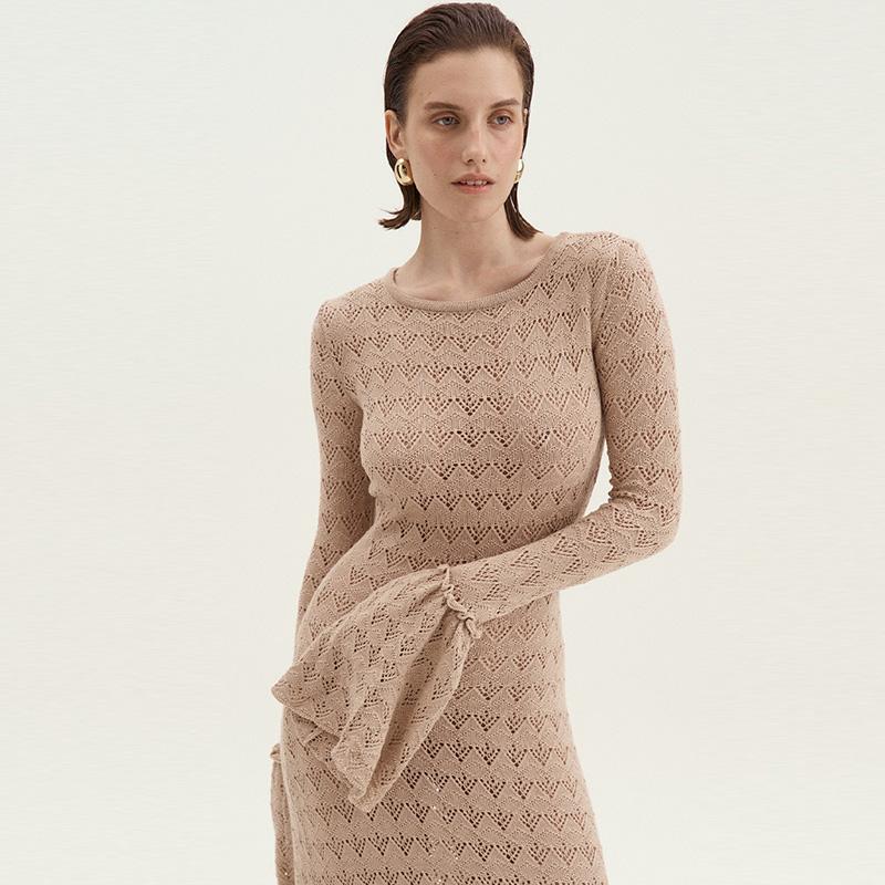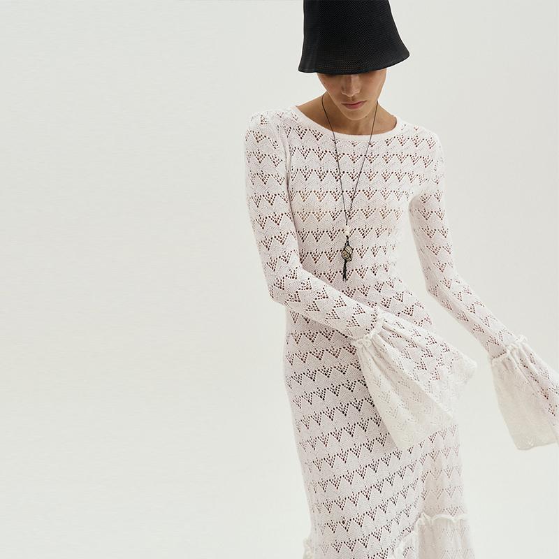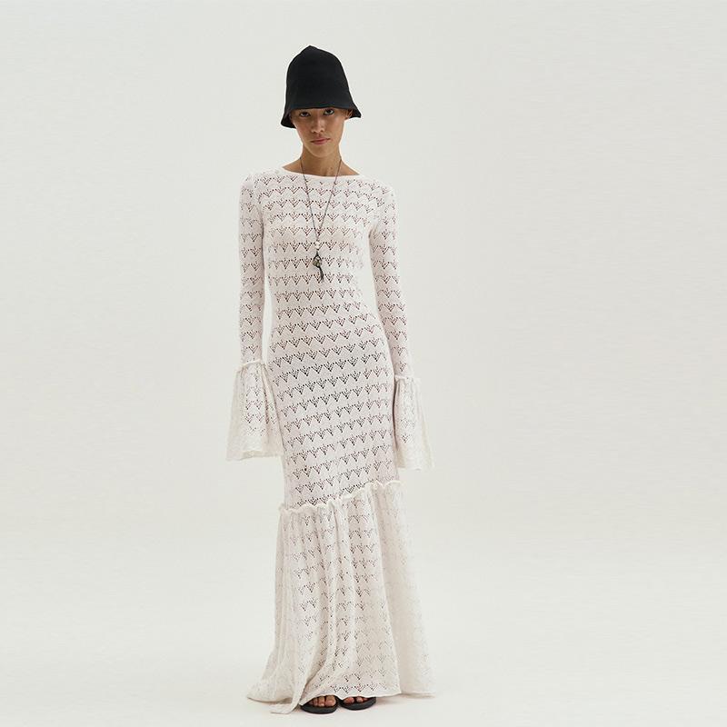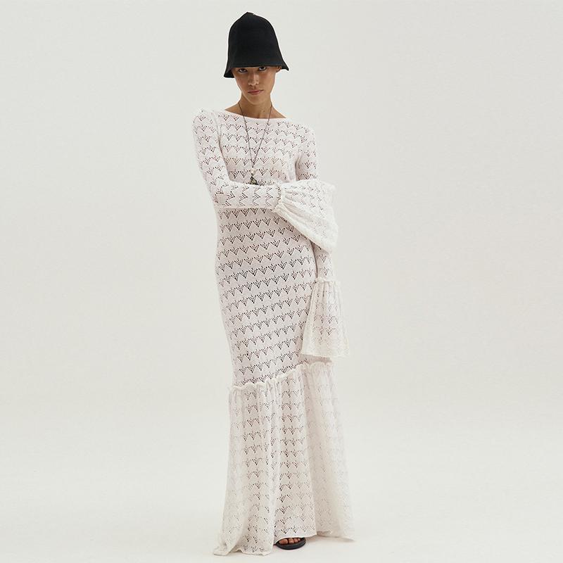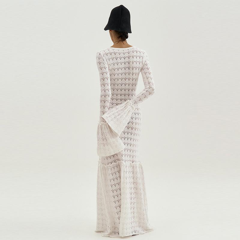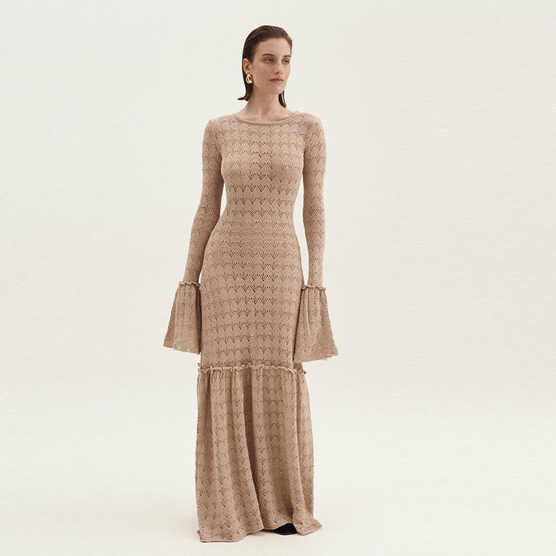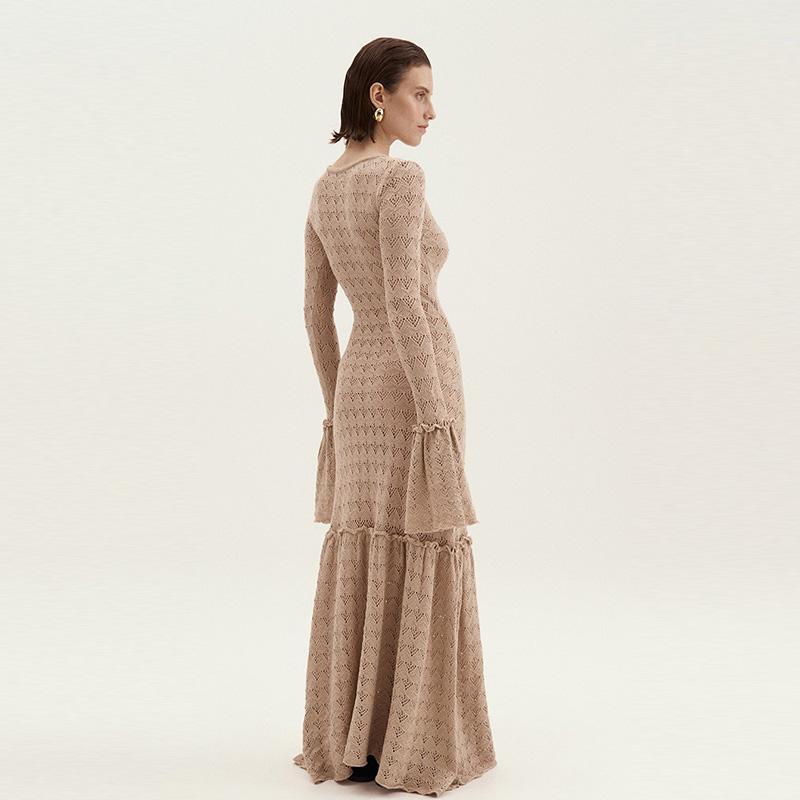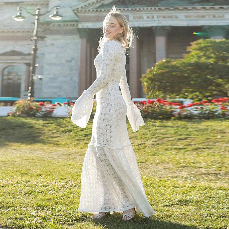 Трикотажные расклешенные рукава оборки подол женские макси платья ранняя осень тонкий комплект бедра женский халат