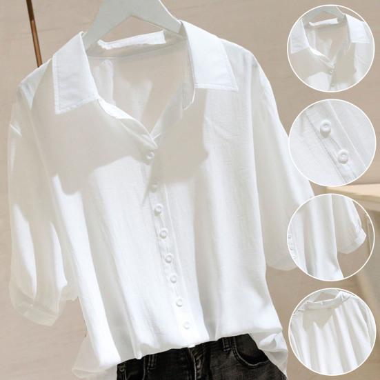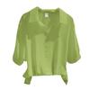 дизайн: Этот топ-рубашка с классическим воротником с лацканами и шикарными короткими рукавами имеет стильный, но универсальный вид, который легко трансформируется из офисной в повседневную обстановку.. Украшение пуговицами добавит изысканности вашему наряду.
