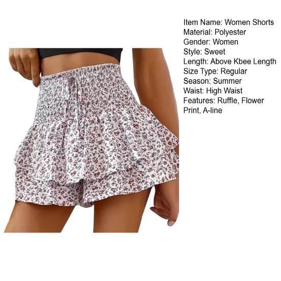 Подчеркните свой летний стиль с помощью этих модных женских шорт с высокой талией и цветочным принтом.. Эти шорты свободного покроя и рюшами подчеркивают изгибы вашего тела, обеспечивая при этом максимальный комфорт.. Эти шорты, изготовленные из высококачественной смеси полиэстера, мягкие, легкие и дышащие, что делает их идеальными для жарких летних дней..