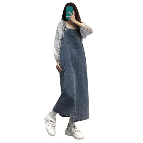Модное джинсовое платье на подтяжках: Подчеркните свой стиль с помощью этого модного джинсового платья на подтяжках со свободным подолом, который подчеркивает вашу фигуру и излучает простоту и модный стиль.