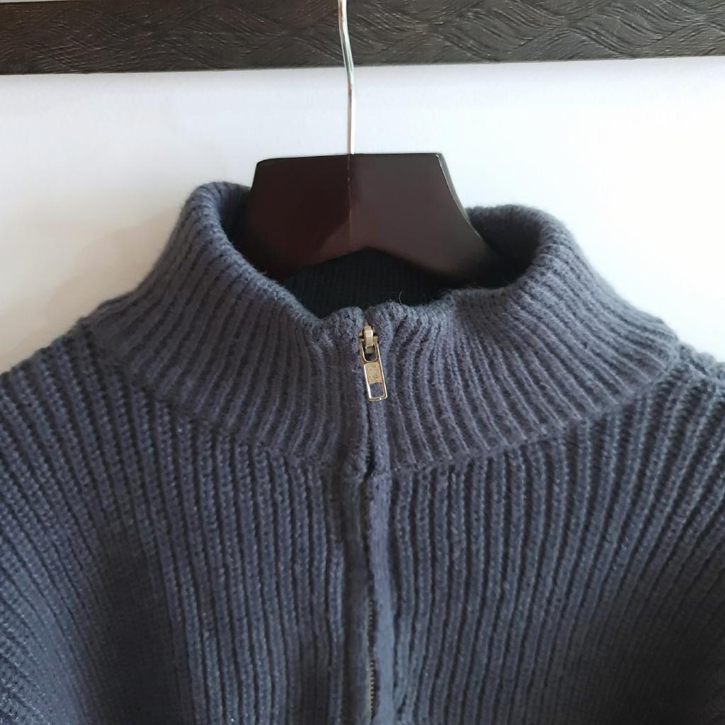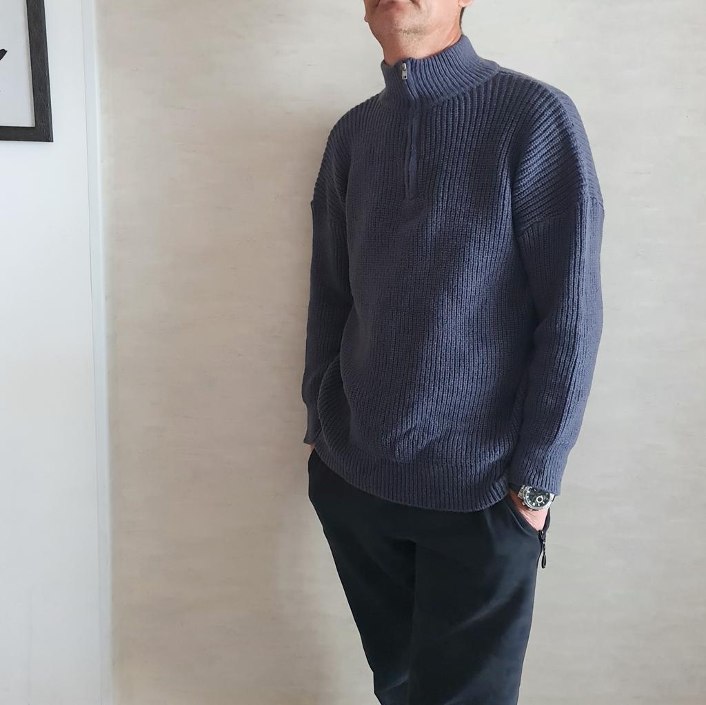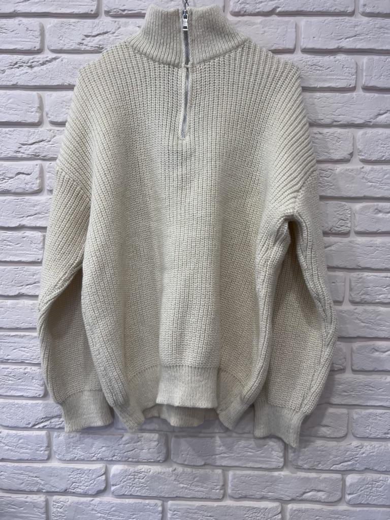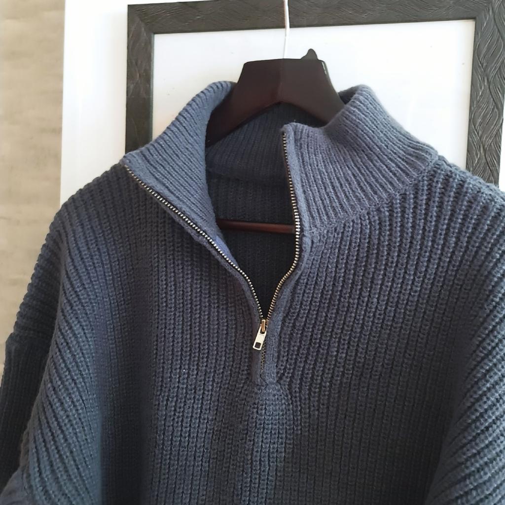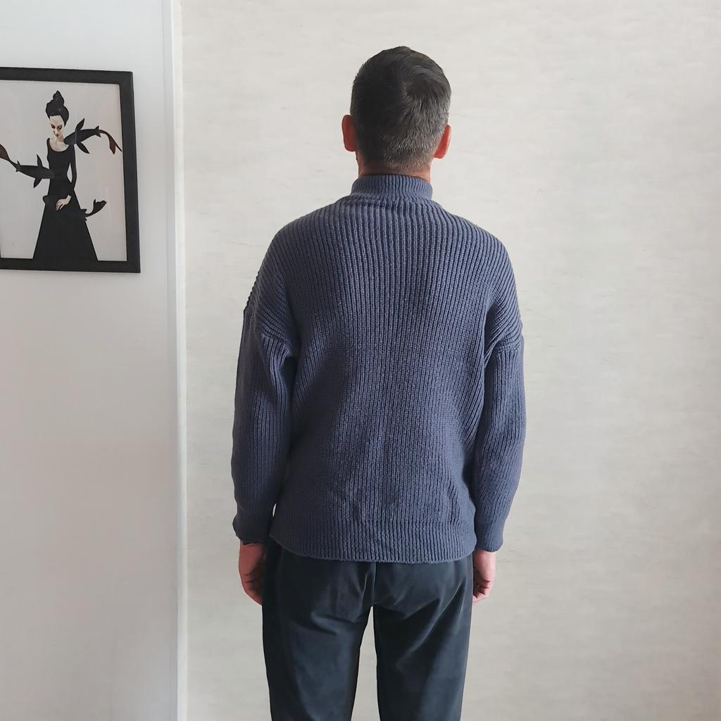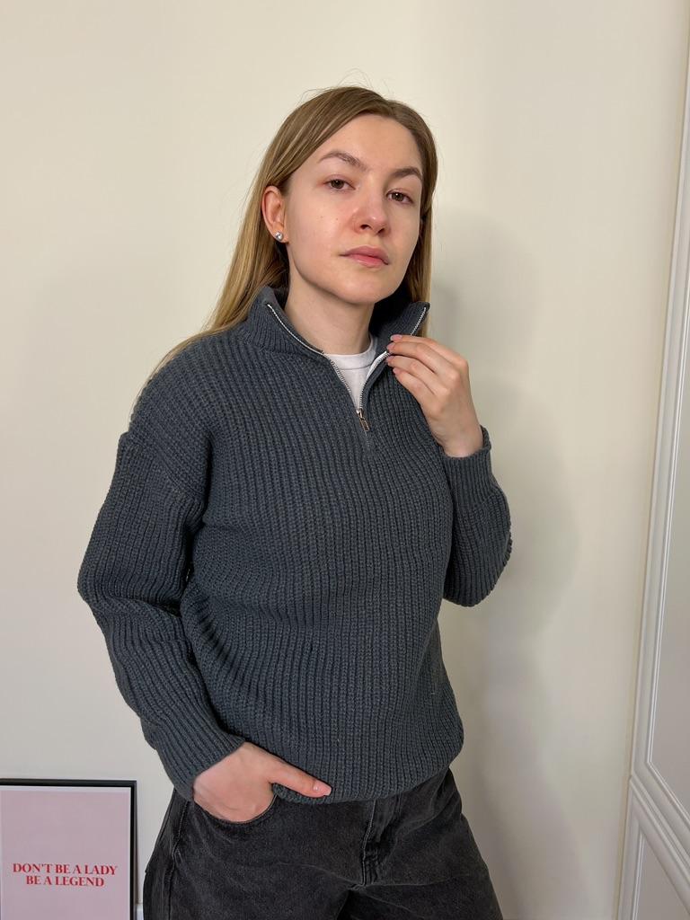 Отличный свитер на молнии! Давно хотела свитер такой модели, взяла мужской, да и пофиг) Вязка плотная и объемная. Свитер выполнен из синтетики. По пошиву на 4, имеются внутри неровности, но их не видно. Длина отличная на рост 165 см, я подворачиваю низ. Держит форму. Плечи чуть спущенные. Мне нравится! Имеется еще в нескольких классических расцветках. На мои параметры 80-64-94 взяла размер М. Рекомендую!