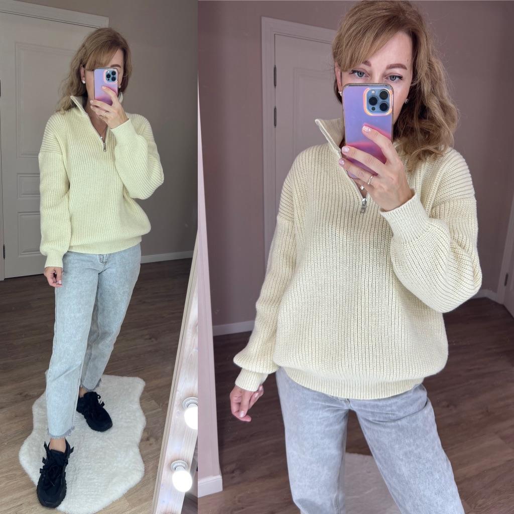 Крутейший свитер❤️😍 Огонь, очень довольна! Присмотритесь к нему, девочки! По ссылке четыре расцветки. На мне бежевый цвет в размере ХЛ. Сел хорошо, оверскйз. Вязка объемная, свитер теплый, но не жаркий за счет рыхловатой вязки. Смотрится очень хорошо. Не колется, тактильно приятный. Ниток нет, молния вшита аккуратно. Мои параметры 90-72-99, рост 169. Вещь из серии «надо брать». На видео видно, какой он замечательный!