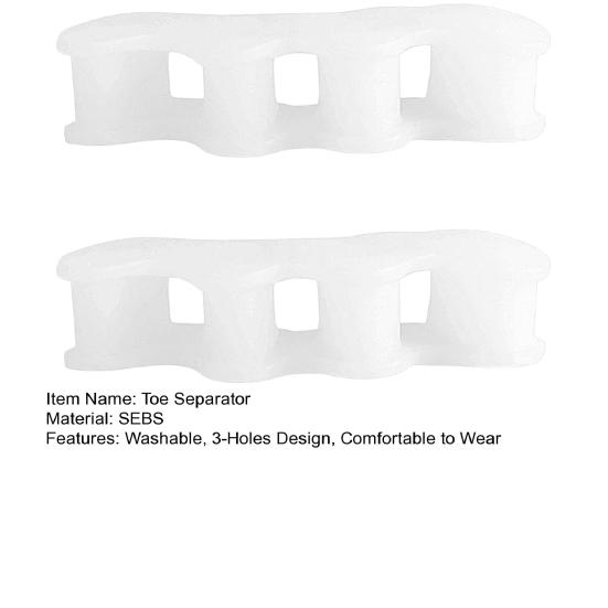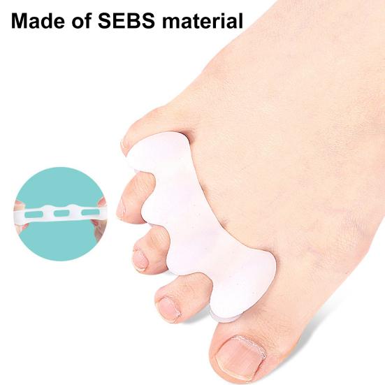 Материал SEBS: Эти разделители пальцев ног, изготовленные из высококачественного материала SEBS, долговечны, их можно стирать и использовать повторно, обеспечивая длительный комфорт и поддержку.