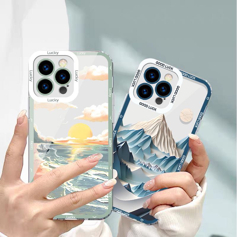 Чехол для iPhone Apple 11, пейзаж масляной живописи, арт-чехол для 12/13/14, прозрачный дизайн с изображением морского восхода солнца для модели MAX