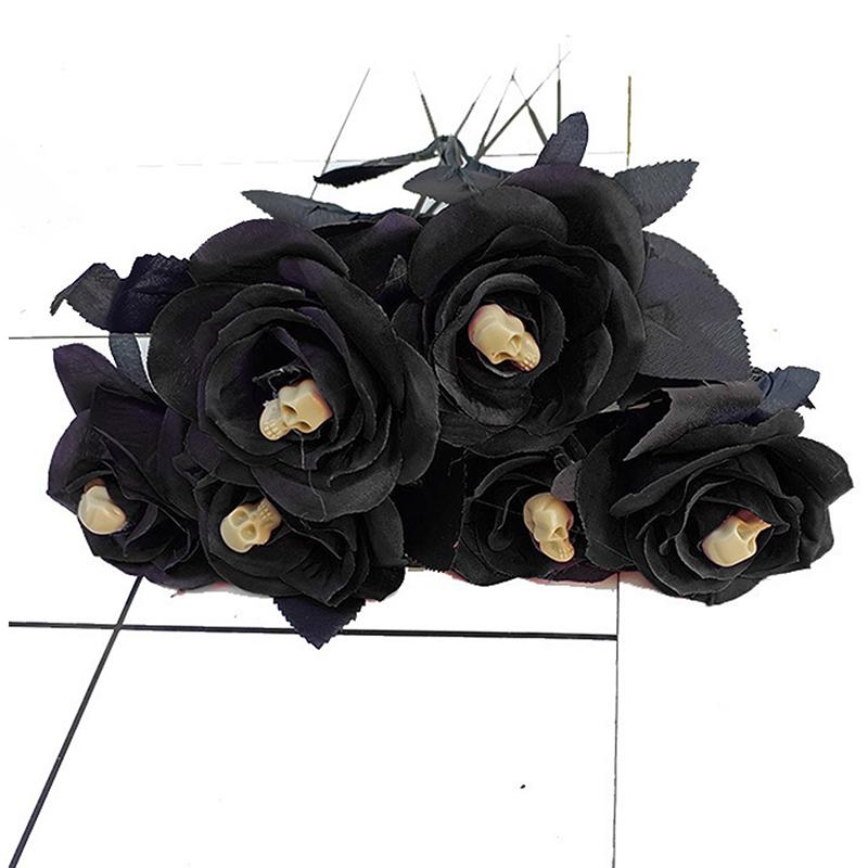1 шт., товары для Хэллоуина, искусственный цветок с черепом, черный искусственный цветок, цветок ужаса, роза