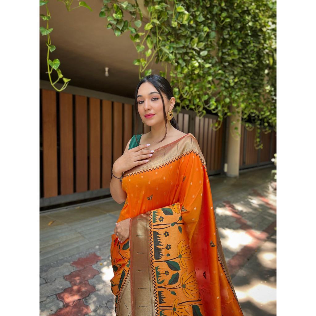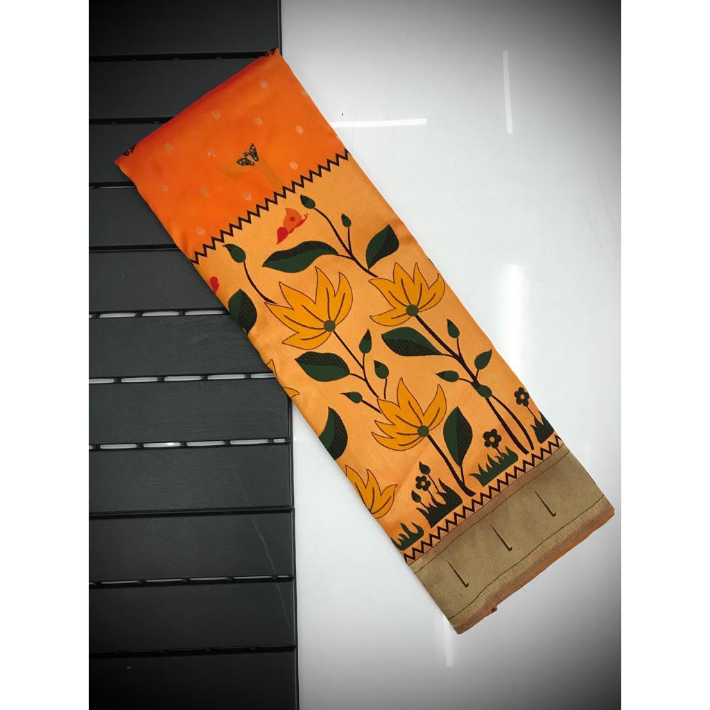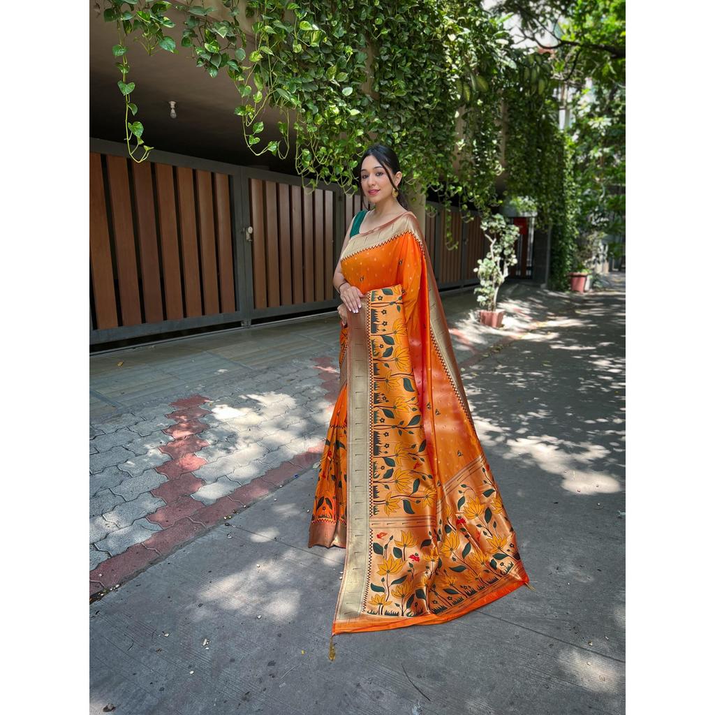 2)Ткань сари : Сари из чистого шелка банараси паитхани с плетением зари из решама и длиной 12 дюймов.