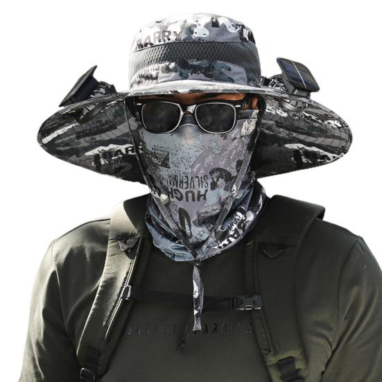 Двойной вентилятор с блоком питания, солнцезащитная шляпа: Встроенные два солнечных вентилятора емкостью 800 мАч, которые можно использовать для работы на солнечной батарее на открытом воздухе и зарядки через USB.. Три скорости ветра длятся 2 часа, высокая скорость — 8 часов, средняя скорость — 16 часов.