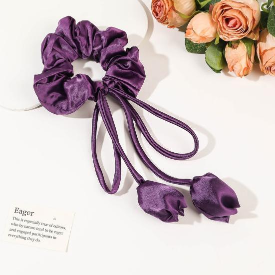 Украсьте свою прическу этой элегантной лентой для волос с подвеской-тюльпаном, которая придаст нотку изысканности.. Эта резинка для волос, изготовленная из атласной ткани, создает роскошный вид и сохраняет цвет надолго..