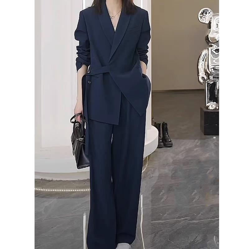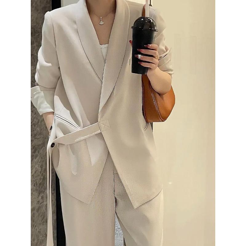 Модный и стройнящий пиджак на весну и осень, повседневный широкий костюм из двух предметов для женщин