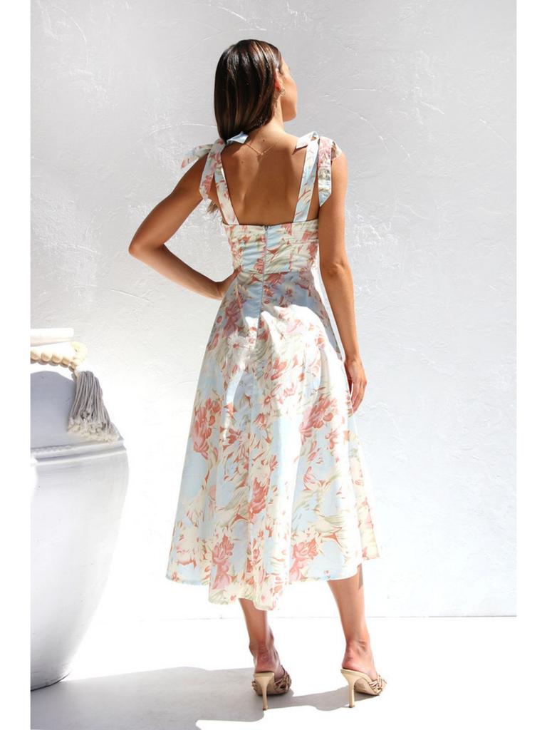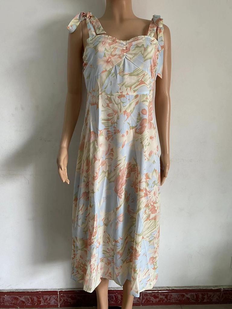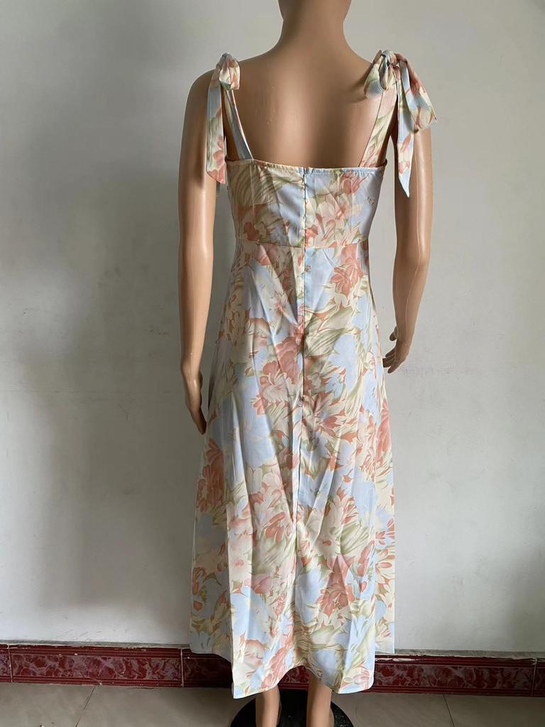 Платье с V-образным вырезом и принтом на бретельках, платье длиной до колена, элегантные платья без рукавов, повседневное женское платье