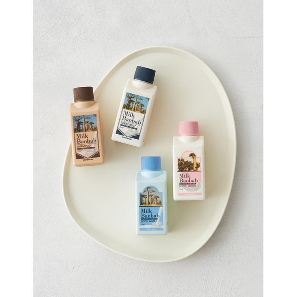 The White Musk Travel Kit is a well-curated set designed for the ultimate body care experience. It includes: 1) Shampoo (70mL), 2) Treatment (70mL), 3) Body Wash (70mL), 4) Body Lotion (70mL). Each product boasts a subtle yet enchanting White Musk fragrance that enhances your travel routine, ensuring you feel refreshed and pampered wherever you go.