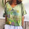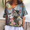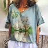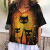 Женская футболка с принтом мультяшного кота, топ больших размеров, летняя женская трендовая одежда, модная рубашка с коротким рукавом и V-образным вырезом, Harajuku