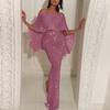 Женское модное сексуальное однотонное вечернее платье с открытыми плечами, облегающее платье с пайетками и запахом на бедрах