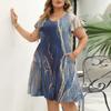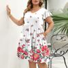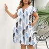 Летнее пляжное платье для женщин, большие размеры, свободная туника с v-образным вырезом, рюшами и короткими рукавами, удобное платье трапециевидной формы с большим подолом