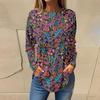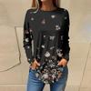 Женская свободная футболка с длинным рукавом с круглым вырезом и принтом, верхний пуловер