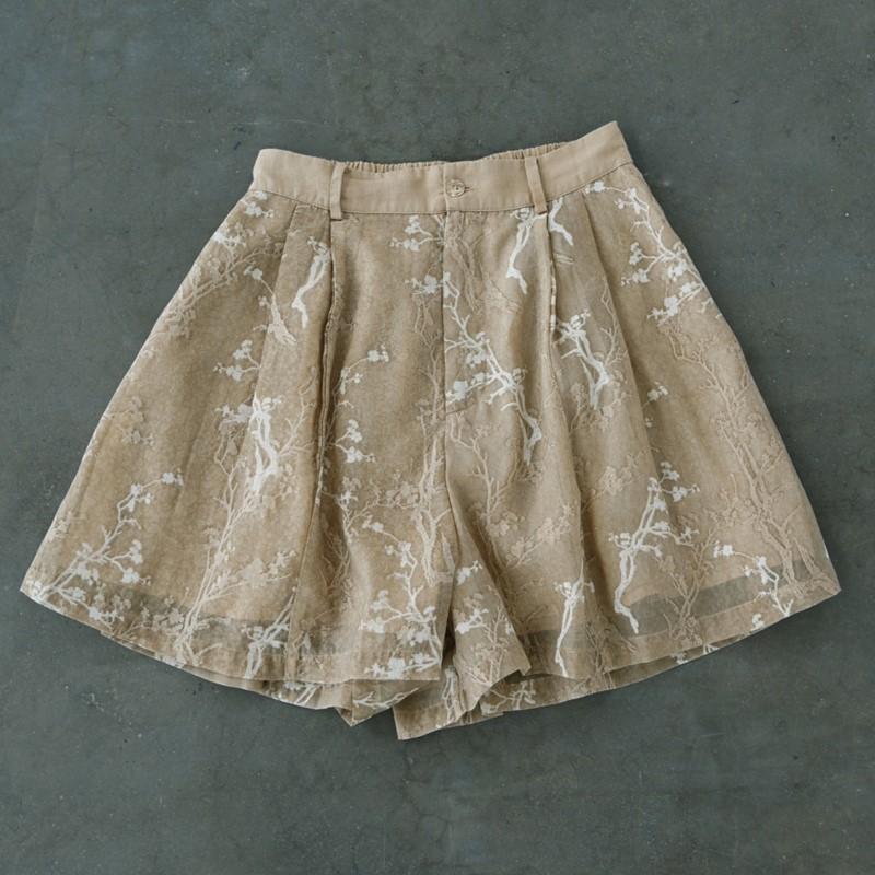 Johnature Женские винтажные жаккардовые шорты с широкими штанинами, эластичная резинка на талии, летние свободные мягкие женские шорты с пуговицами
