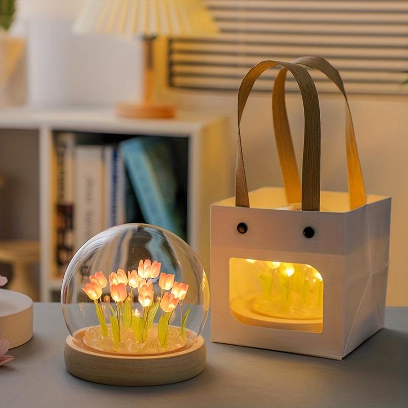 1 креативный ночник-тюльпан из 9 предметов, набор для самостоятельного изготовления, настольная лампа ручной работы, подходит для украшения комнаты и спальни, фоновое освещение