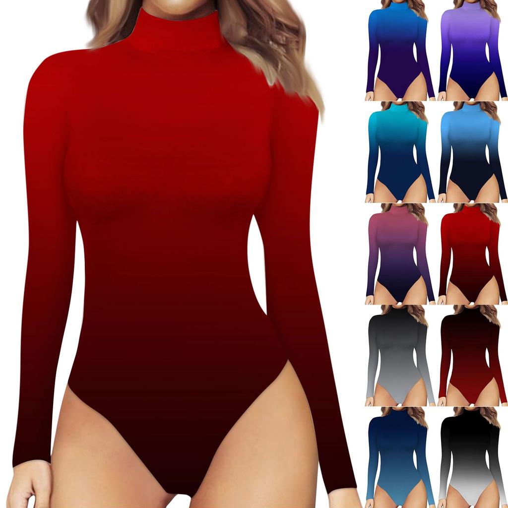 Женская осенне-зимняя футболка-комбинезон с длинным рукавом и высокой горловиной, цветной градиентный комбинезон — купить товар онлайн с бесплатной доставкой по всему миру!