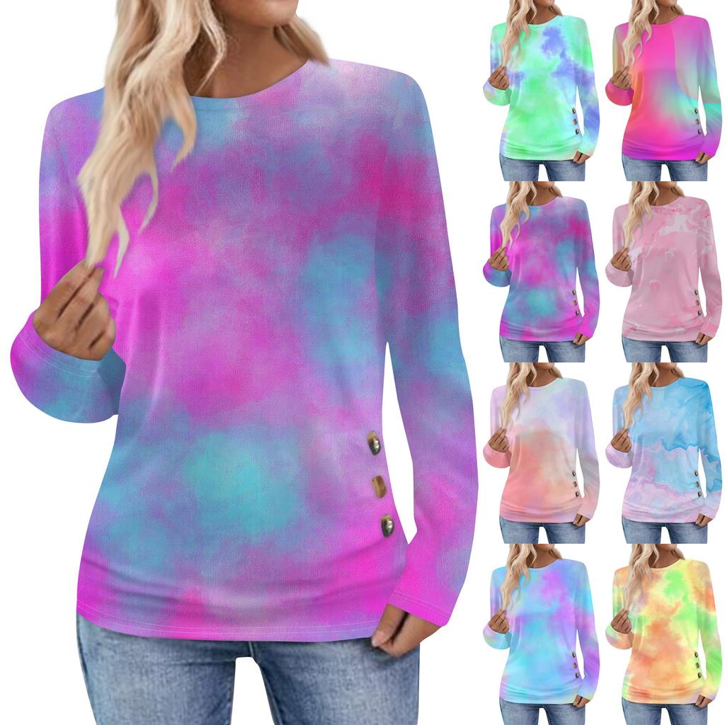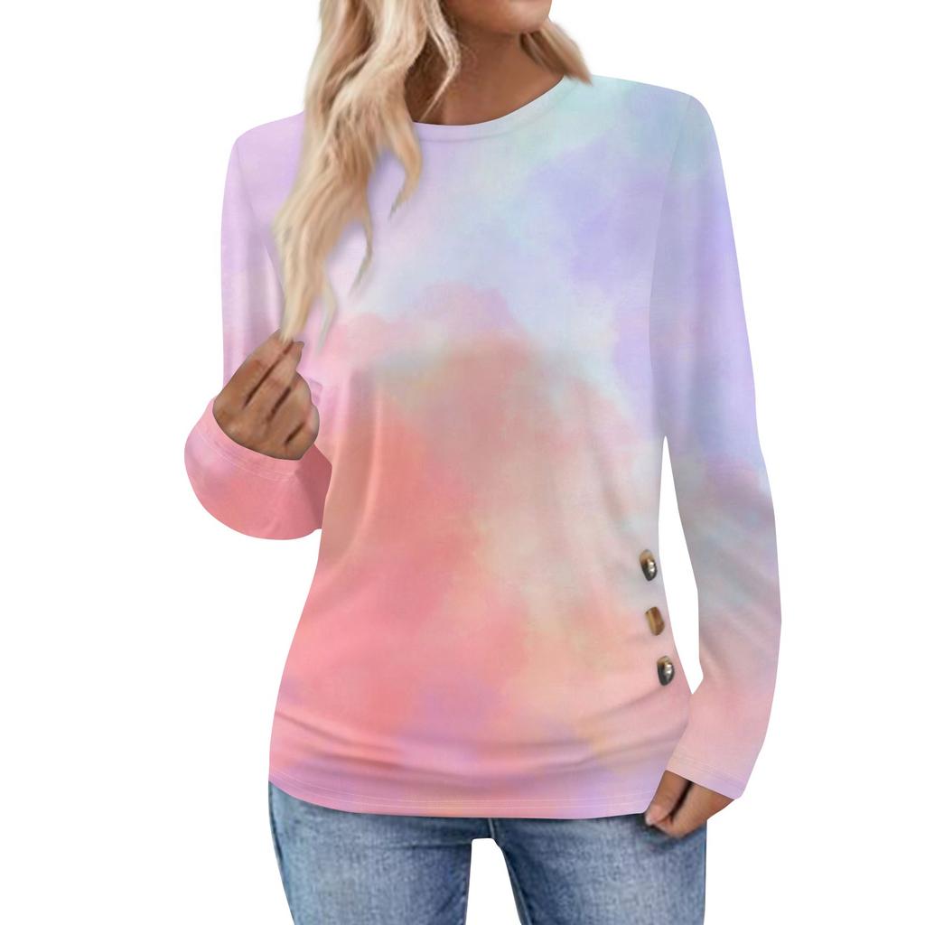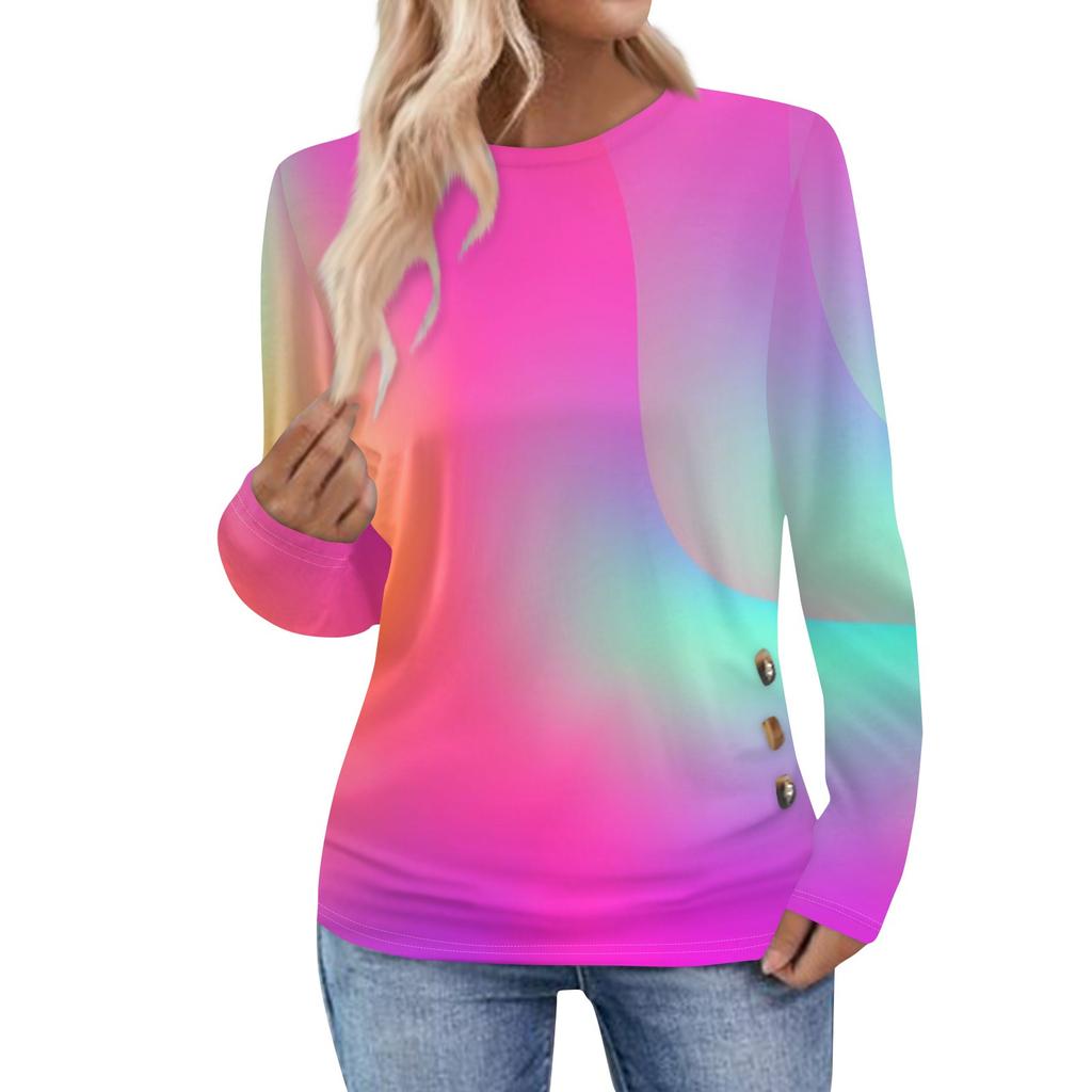 Женская повседневная элегантная удобная модная футболка с круглым вырезом и топ с градиентным принтом