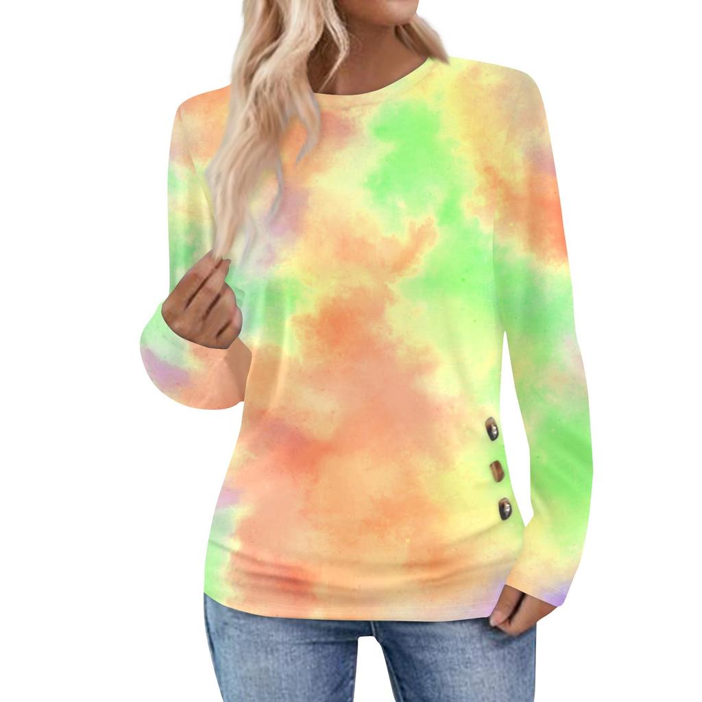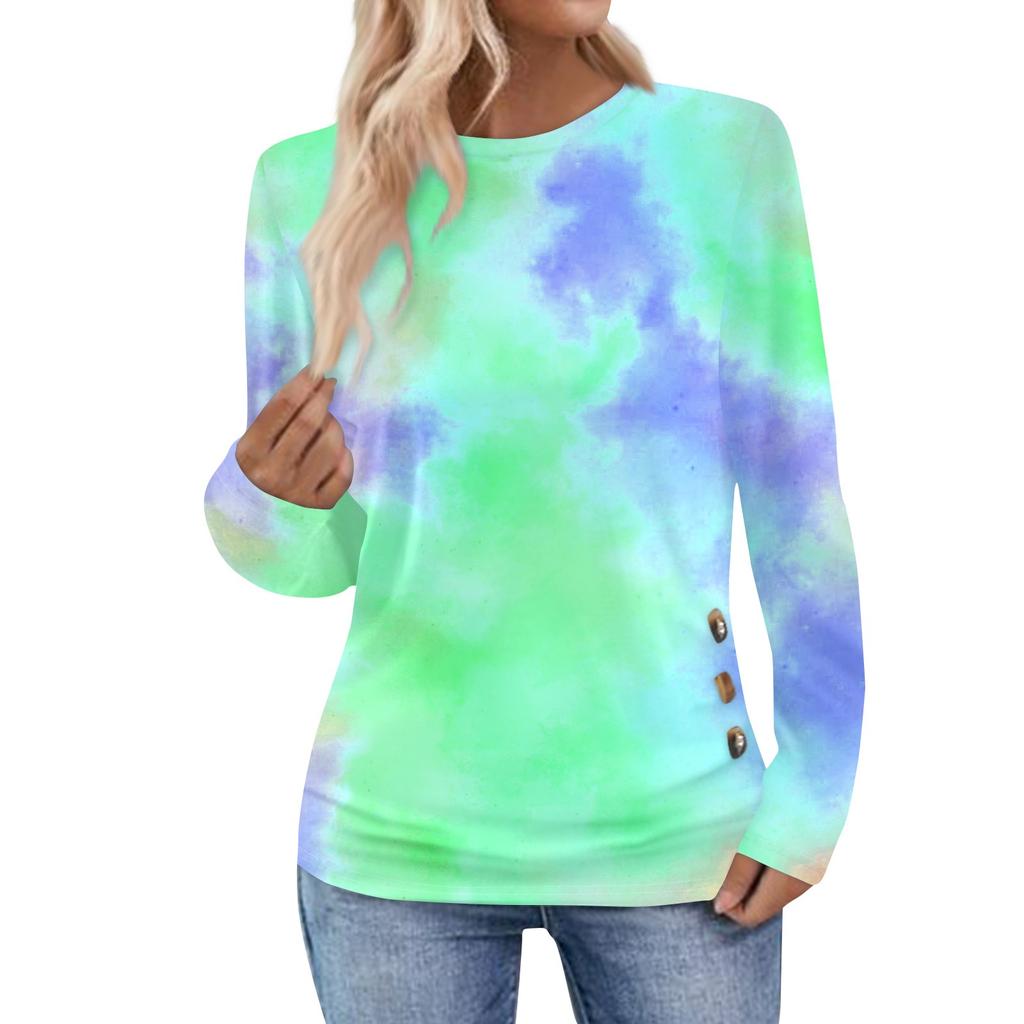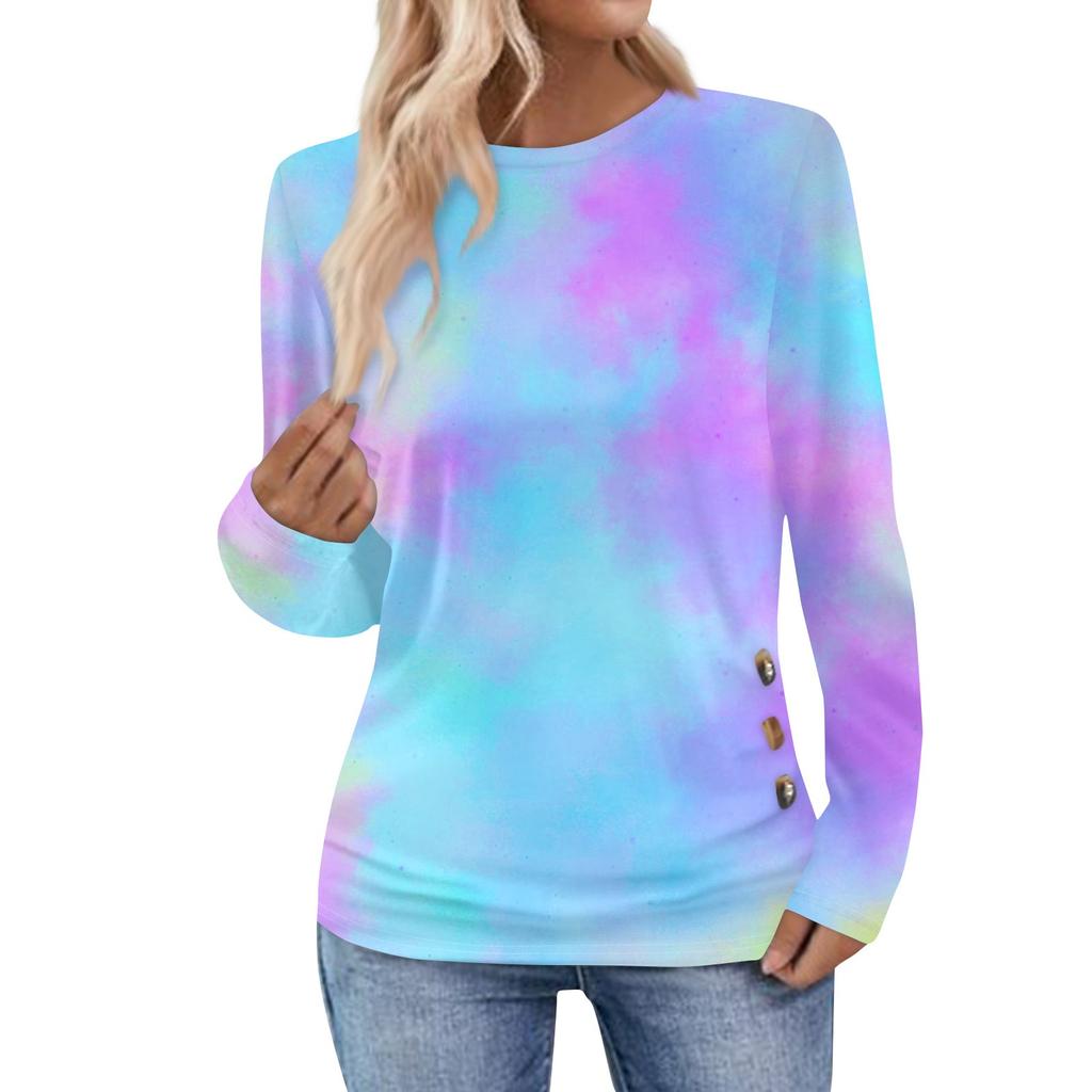 Женская повседневная элегантная удобная модная футболка с круглым вырезом и топ с градиентным принтом