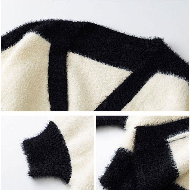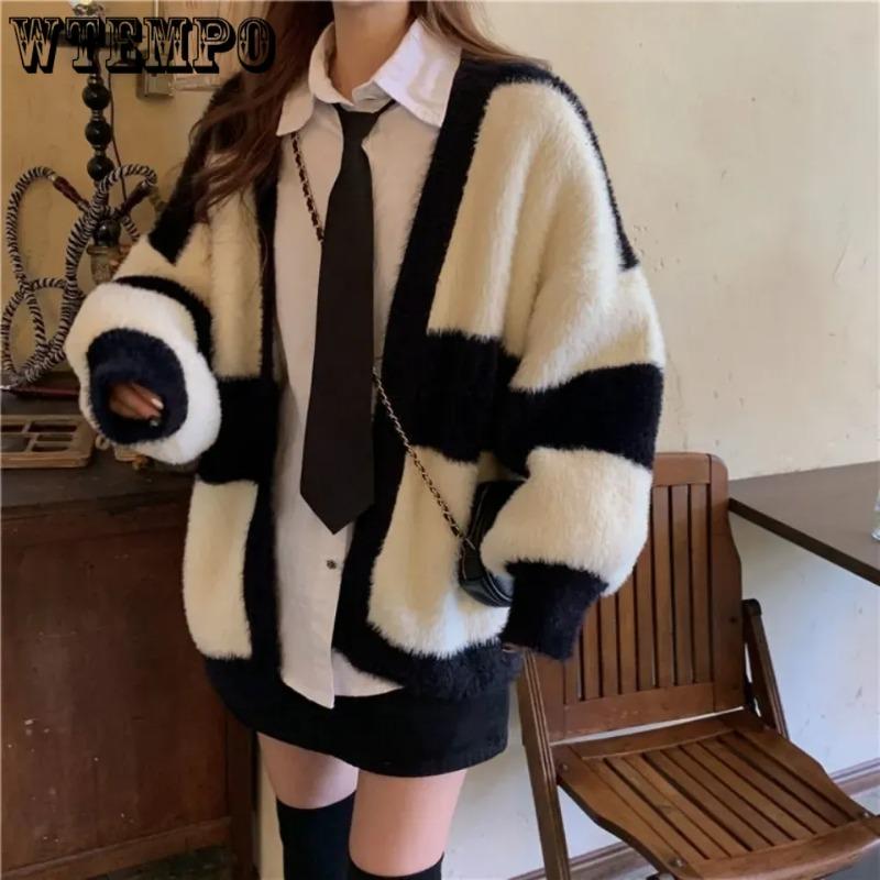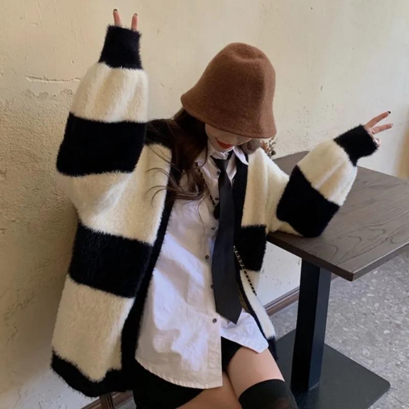 Женский черно-белый полосатый свитер контрастного цвета, универсальный свободный кардиган с длинным рукавом, свитер, пальто