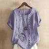 Женская модная футболка с круглым вырезом и коротким рукавом, повседневная рубашка из хлопка и льна с рисунком, свободная летняя блузка с принтом в виде рыбы, топы