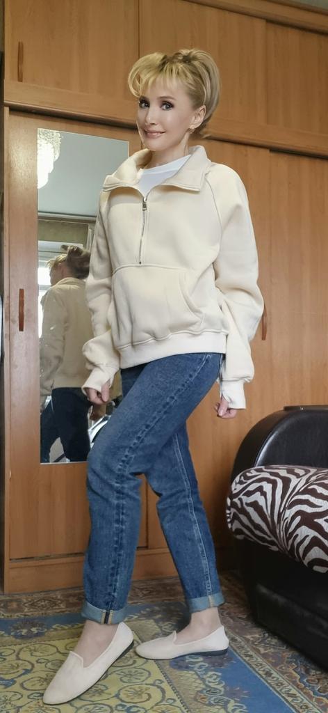 ОЧЕНЬ УЮТНАЯ 🩷 ТОЛСТОВКА! Привет 👋 До чего она теплая и уютная, эта толстовка! Я в нее влюбилась 😍 Не ожидала за эту цену. Но скажу сходу - рекомендовать буду! Вы только посмотрите на эти расцветки. Их около 20 штук. Глаза разбегаются. И размерка шикарная. На мне L и это не максимальный размер) Итак, толстовка изнутри полностью на флисе. Очень приятный к телу,не колючий. Воротник на молнии. Он из нескольких слоев ткани, поэтому держит форму. Можно носить стойкой или расстегнуть по типу поло. Рукав реглан. Длинный. Отлично на высокий рост. Но нишу и на рукавах резинки в цвет. На манжетах митенки. Спереди глубокой сквозной карман-кенгуру, он тоже изнутри флисовый. Пошив фабричный - просто безупречный. И длина мне здесь очень нравится! Прям идеальная 🔥 Толстовка не длинная и не короткая, такая, как хотелось. Материал полиэстер,но не противный,а наоборот. Тянется. А цвет какой 😍 Розовый сейчас тоже очень актуален. Но я просто его люблю за то, как он освежает лицо🩷 На холодный сезон - просто шикарная вещь Стильная Теплая Продуманная И качественная! Мой рост 173см. Параметры: 98/89/110см Размер одежды 50 -52 Замеры в размере L: 📏длина 59см 📏длина рукава от воротника 78см 📏высота воротника 10см 📏ОГ 126см (без растяжения) 📏ОТ 122см 📏Низ 112 - 130см Рада,что угадала с размером. Сначала хотела взять максимальный, но я утонула бы в нем. L для меня идеально подошёл. Мне толстовка понравилась очень😍 Если и вам тоже - однозначно рекомендую ✅ #elena_likui #женский_гардероб #толстовка #CANVAUS