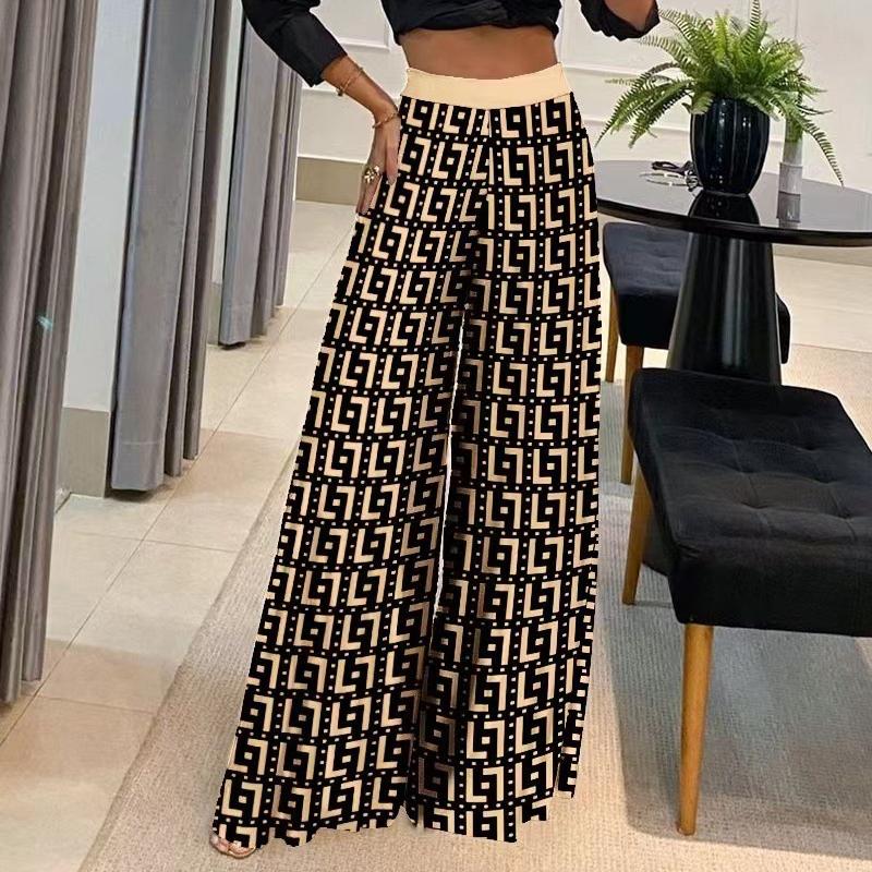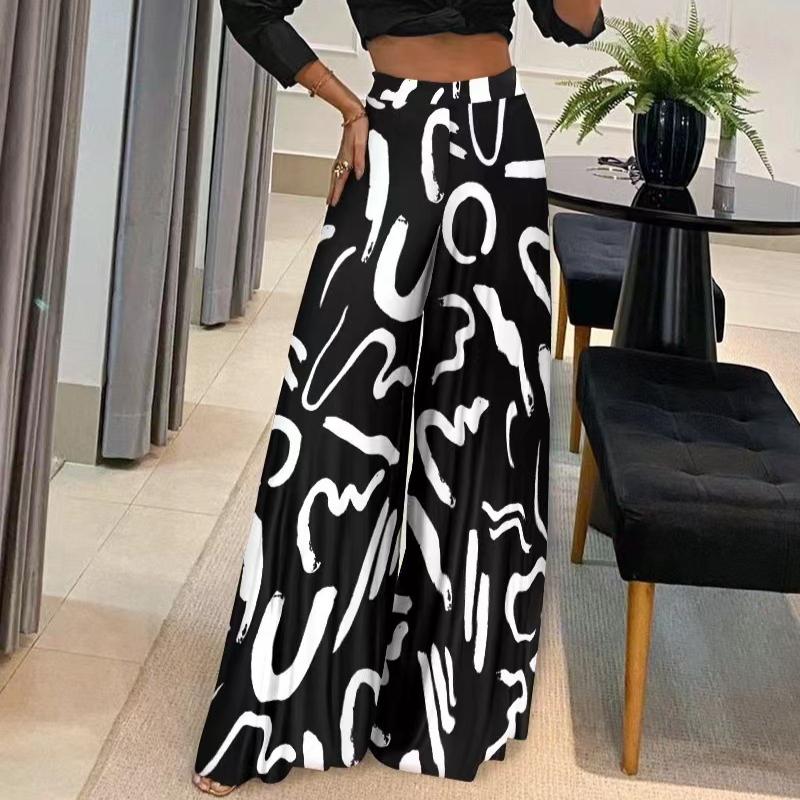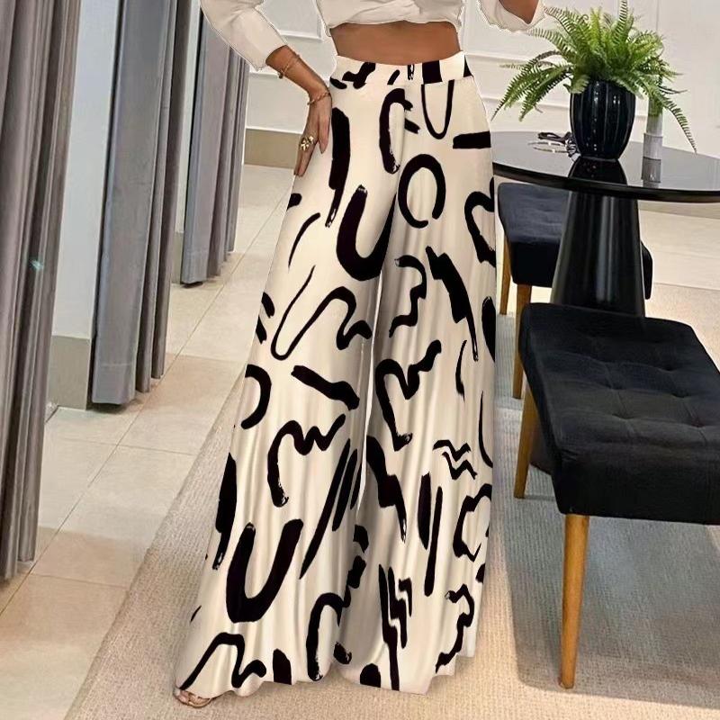 Осенний роман женские модные свободные брюки с принтом элегантная одежда с широкими штанинами и эластичным поясом