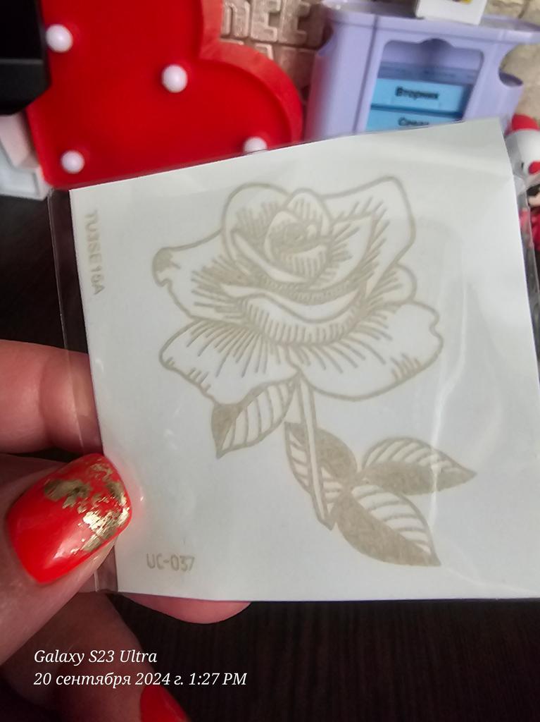 Переводилка очень понравилась. Качество хорошее. На коже держится отлично, если сильно не тереть, то останется, в первозданном виде, около 2ух недель. Смотрится почти как татуировка, после 4х дней носки, глянец стирается и уже более походит на настоящее тату. Товаром довольна. Спасибо продавцу))