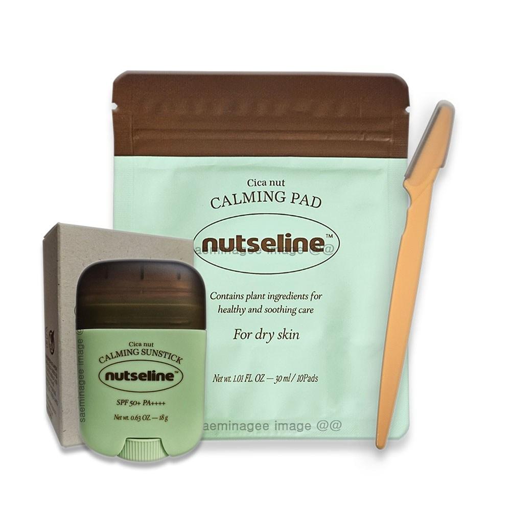 Nutserine Cicanet Cica Balm Sun Stick 18 г + Nutserine Cica Nut Calming Pad 10 листов + 1 нож для бровей