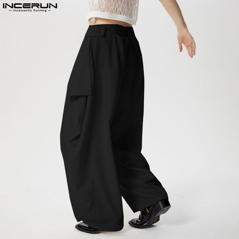 INCERUN Мужские брюки-шаровары с поясом и молнией на талии, повседневные большие свободные брюки
