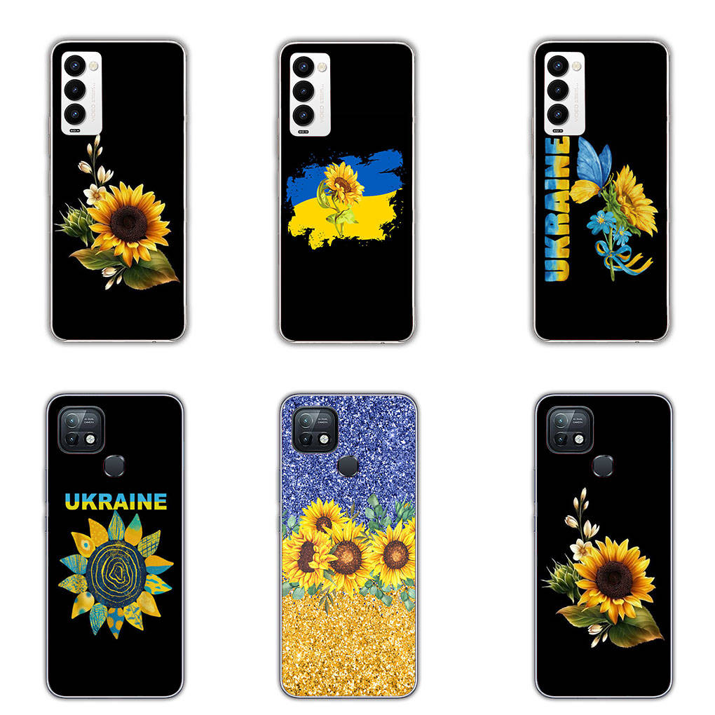 Чехол для Motorola Moto Edge 40 30 neo G54 G24 G84 iPhone 15 14 Xiaomi Redmi Note 13 12 11 Pro Samsung Galaxy A54 с изображением подсолнуха и карты Украины с украинским флагом