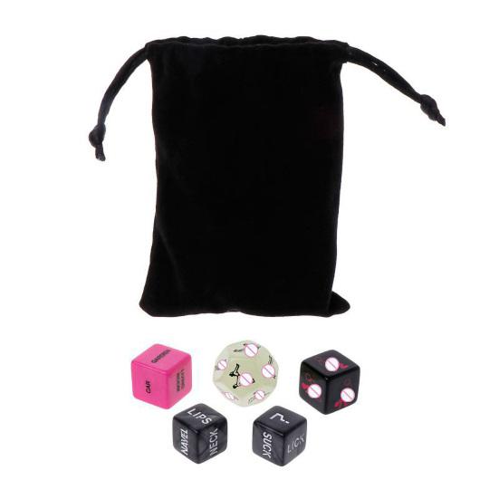 Длина жемчужного узора черных кубик – 1.6cm, ширина – 1.6cm, высота – 1.6cm. Длина розовых красных костей 1,9 см, ширина 1,9 см, высота 1,9 см. Высота двенадцати сторон светящихся костей для секса составляет 2,5 см. Длина тканевого мешка 5 см, ширина 6 см.