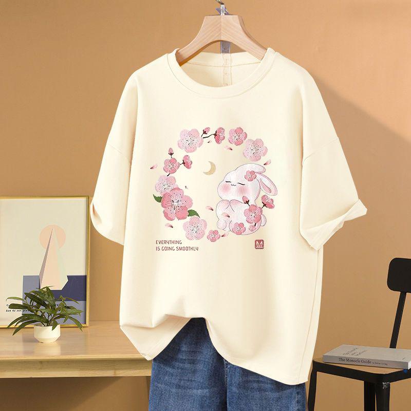 Летний повседневный топ из чистого хлопка с коротким рукавом и круглым вырезом, футболка с принтом мультяшного кролика, базовый пуловер S-5XL — купить товар онлайн с бесплатной доставкой до всему миру!